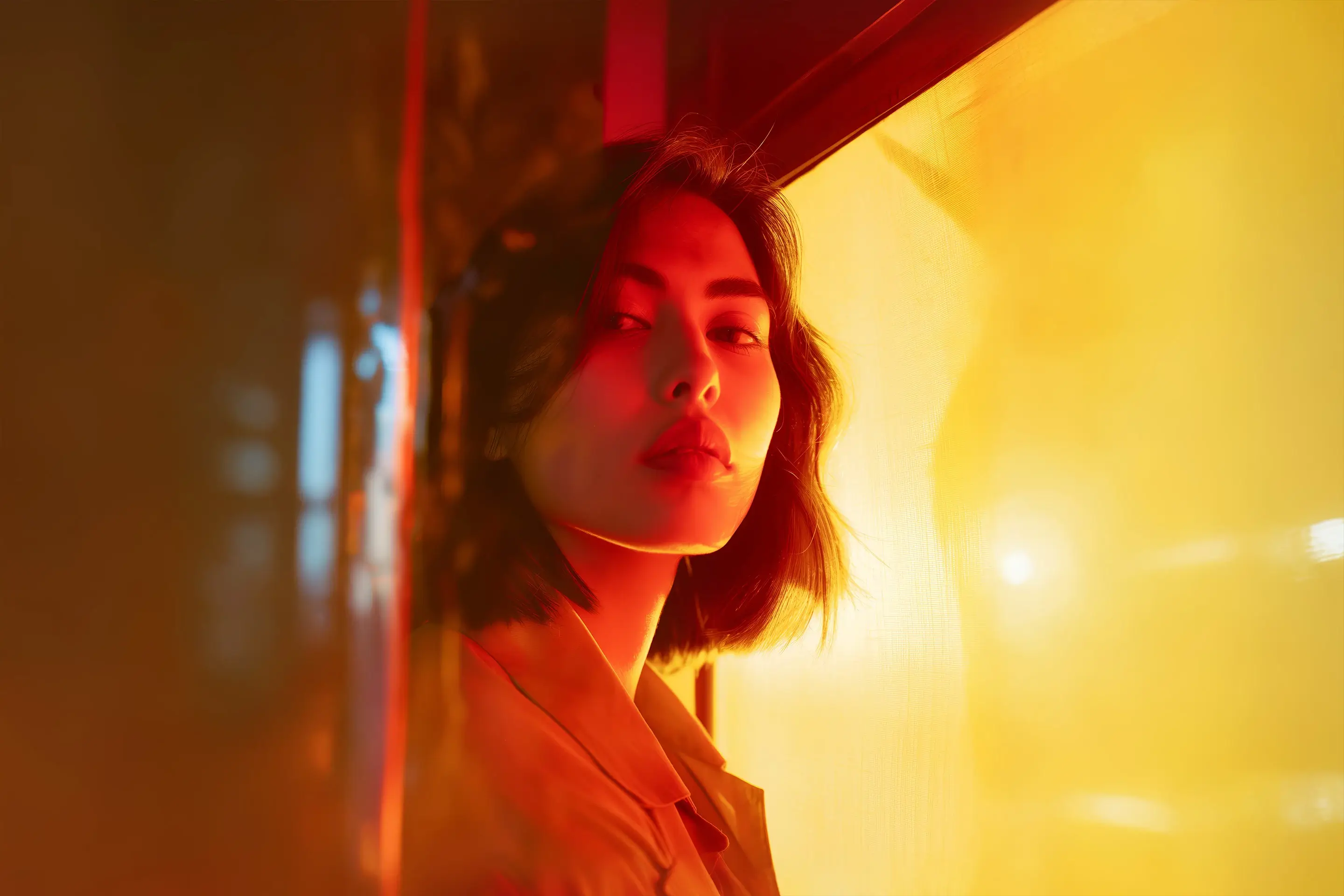 Bold character study with saturated blues, sculpted rim light, and confident gaze crafted for fashion editorial and brand personality series.