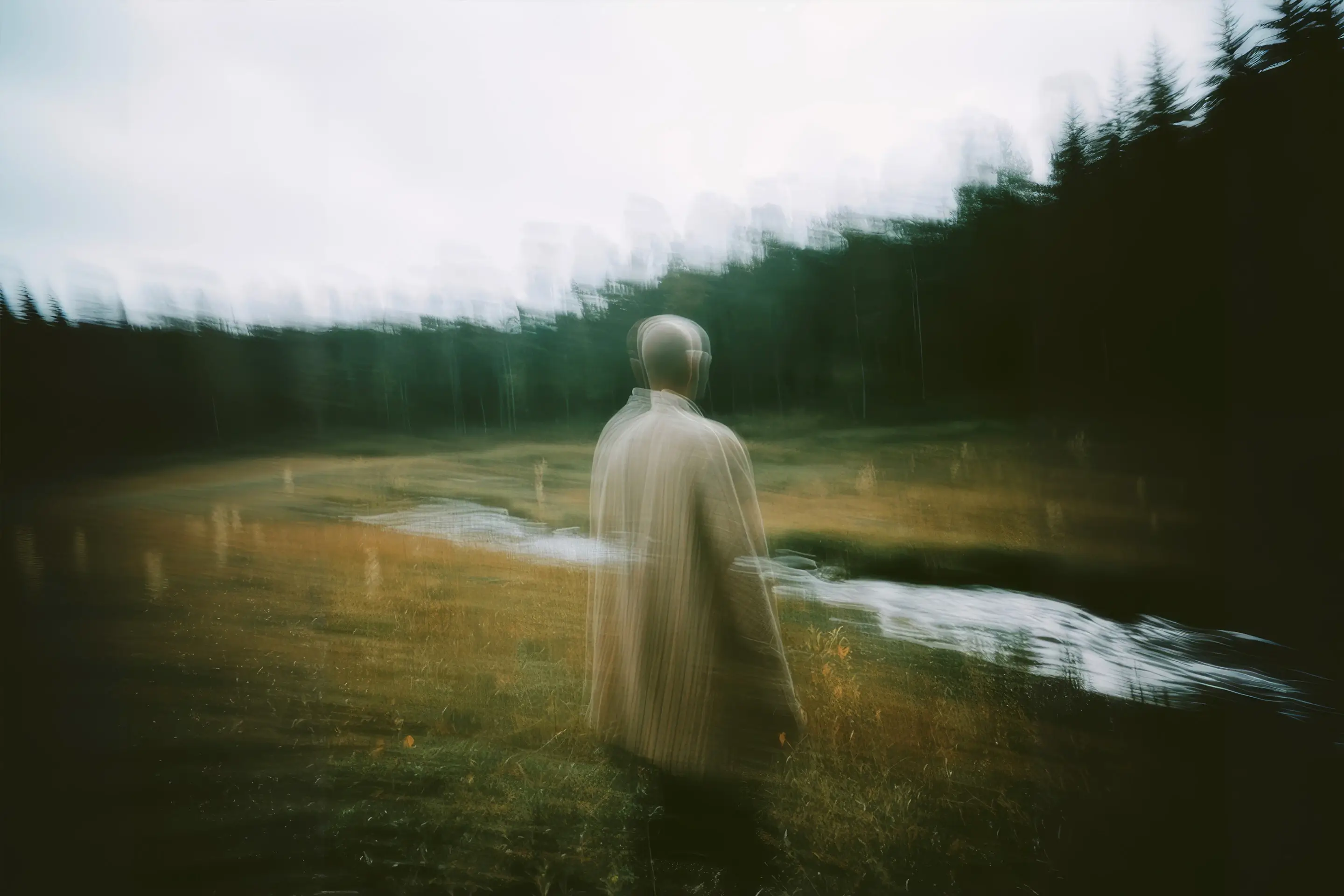 Ethereal equine scene in misty meadow, capturing solitude, scale, and breathy motion for a poetic countryside lifestyle campaign film deliverables.