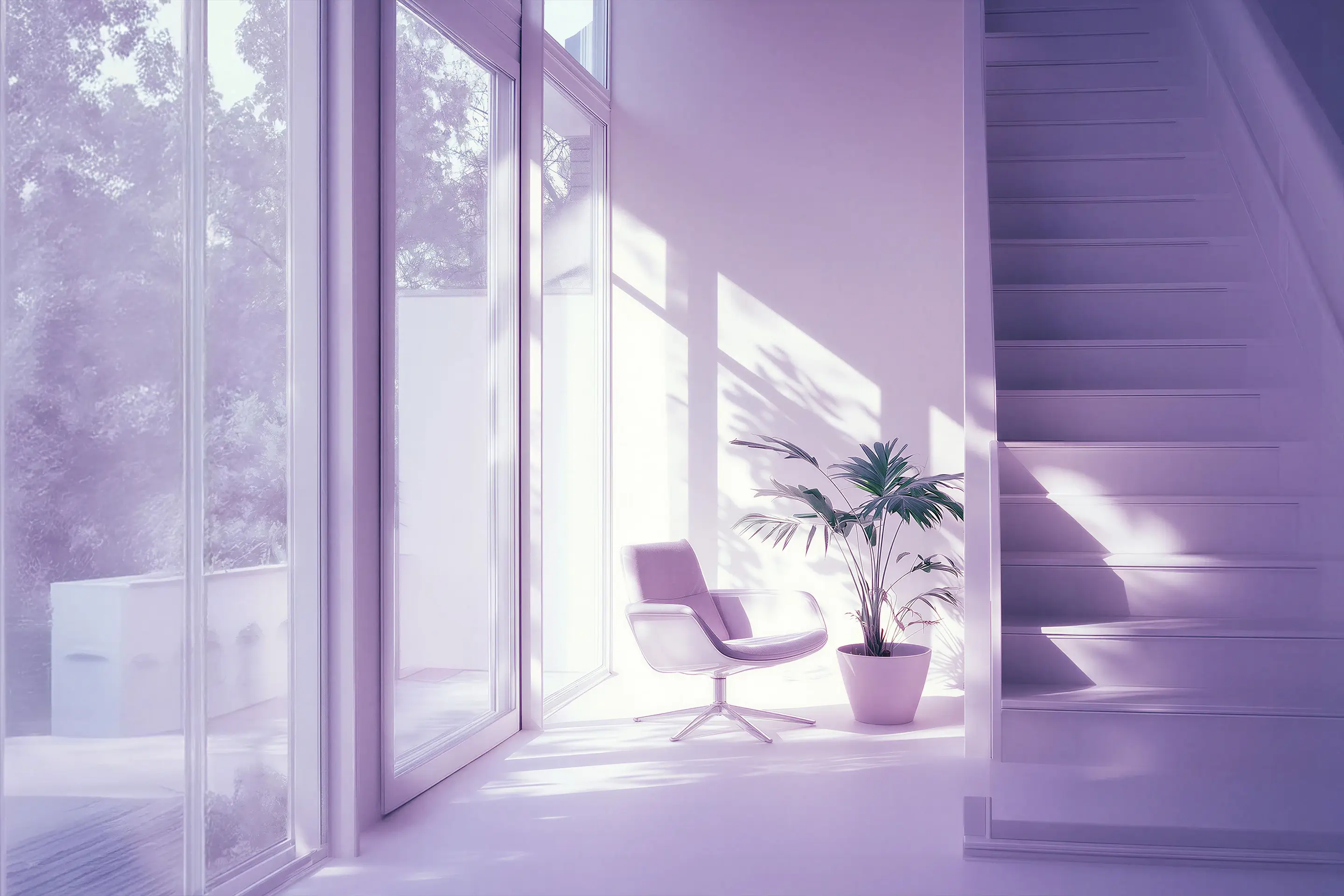 Playful product-meets-botanical still with saturated purple set design, celebrating sustainable home goods in a cheeky, minimal composition brand awareness assets.